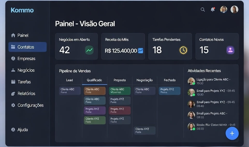 Do primeiro contato ao pós-venda — acelere seu atendimento e dê visibilidade total ao seu funil de vendas.